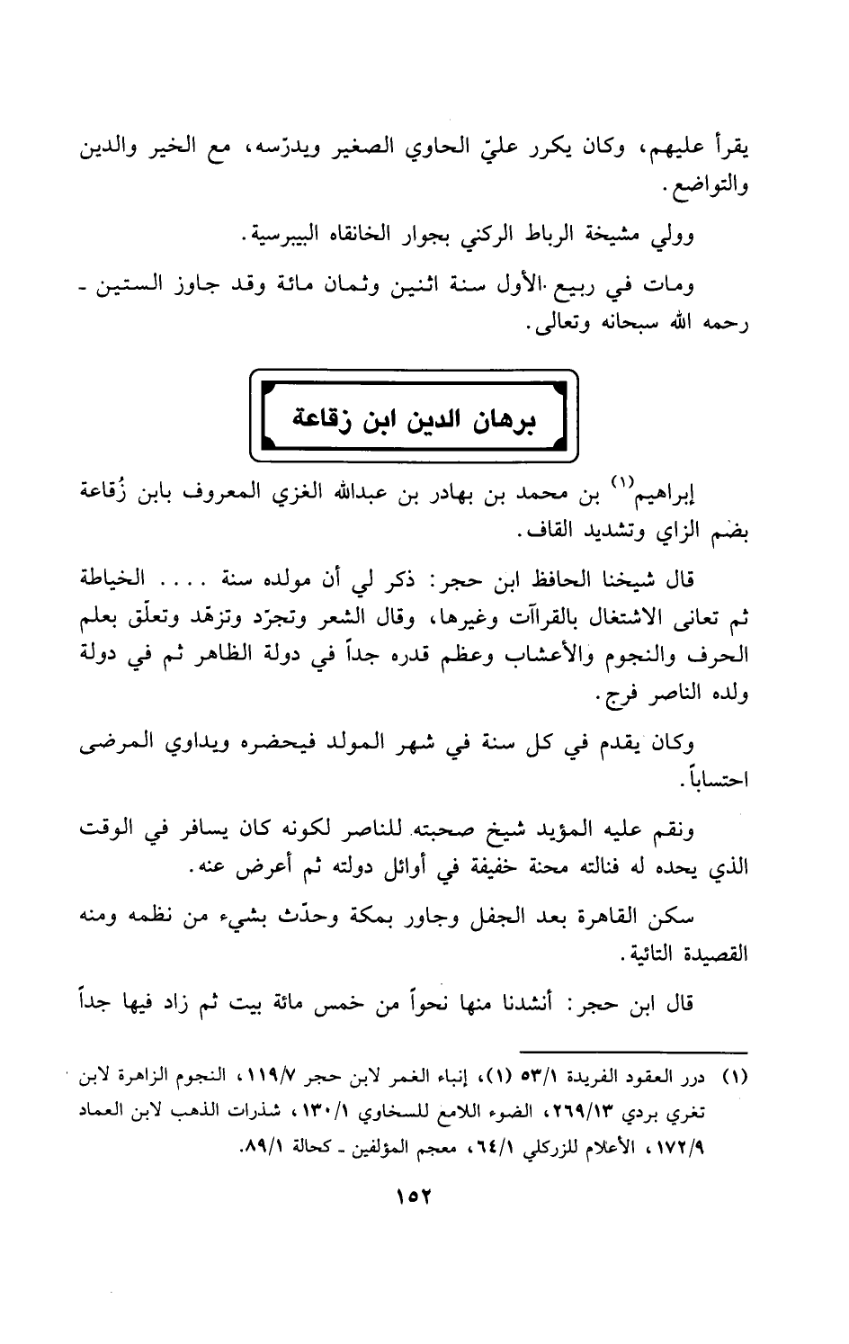 إبراهيم (¬1) بن محمد بن بهادر بن عبد الله الغزي المعروف بابن زُقاعة بضم الزاي وتشديد القاف.