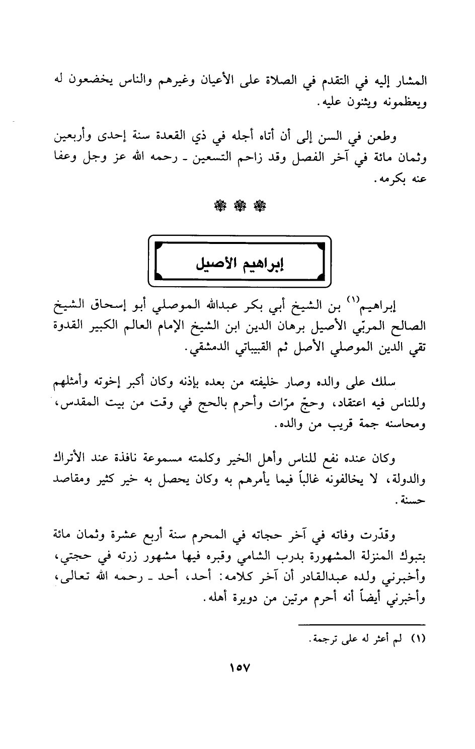 إبراهيم (¬1) بن الشيخ أبي بكر عبد الله الموصلي أبو إسحاق الشيخ الصالح المربّي الأصيل برهان الدين ابن الشيخ الإِمام العالم الكبير القدوة تقي الدين الموصلي الأصل ثم القبيباتي الدمشقي.