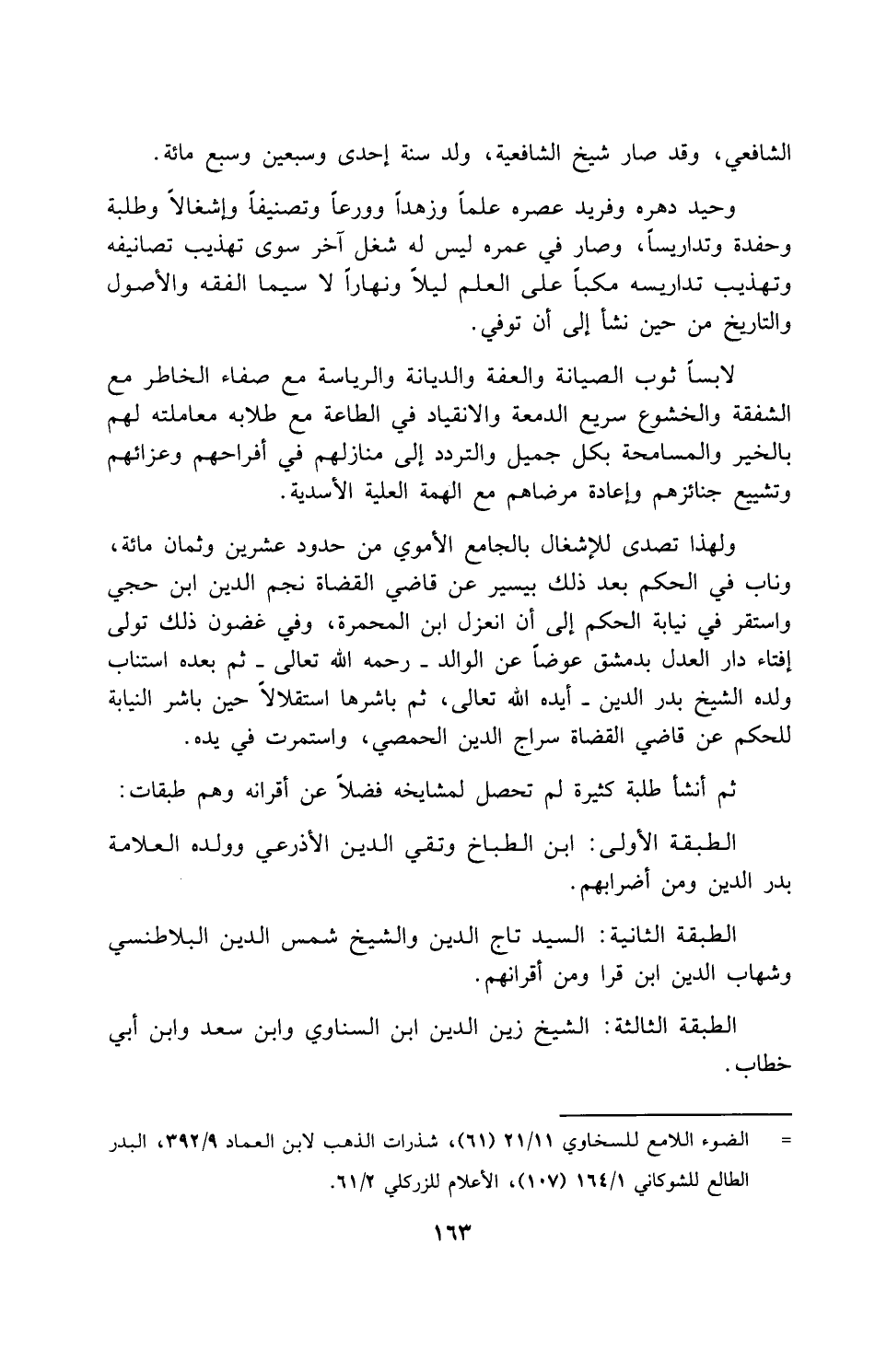 الطبقة الأولى: ابن الطباخ وتقي الدين الأذرعي وولده العلامة بدر الدين ومن أضرابهم.