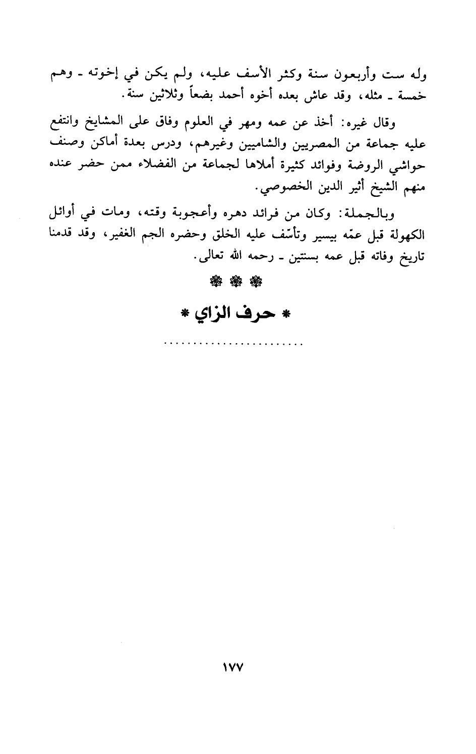 وبالجملة: وكان من فرائد دهره وأعجوبة وقته، ومات في أوائل الكهولة قبل عمّه بيسير وتأسّف عليه الخلق وحضره الجم الغفير، وقد قدمنا تاريخ وفاته قبل عمه بسنتين -رحمه الله تعالى.