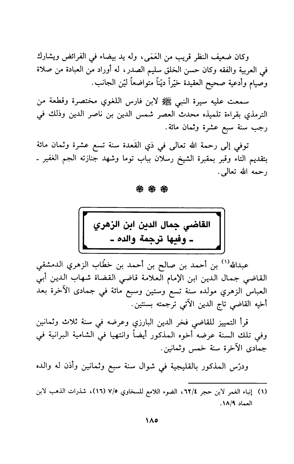 القاضي جمال الدين ابن الزهري -وفيها ترجمة والده-