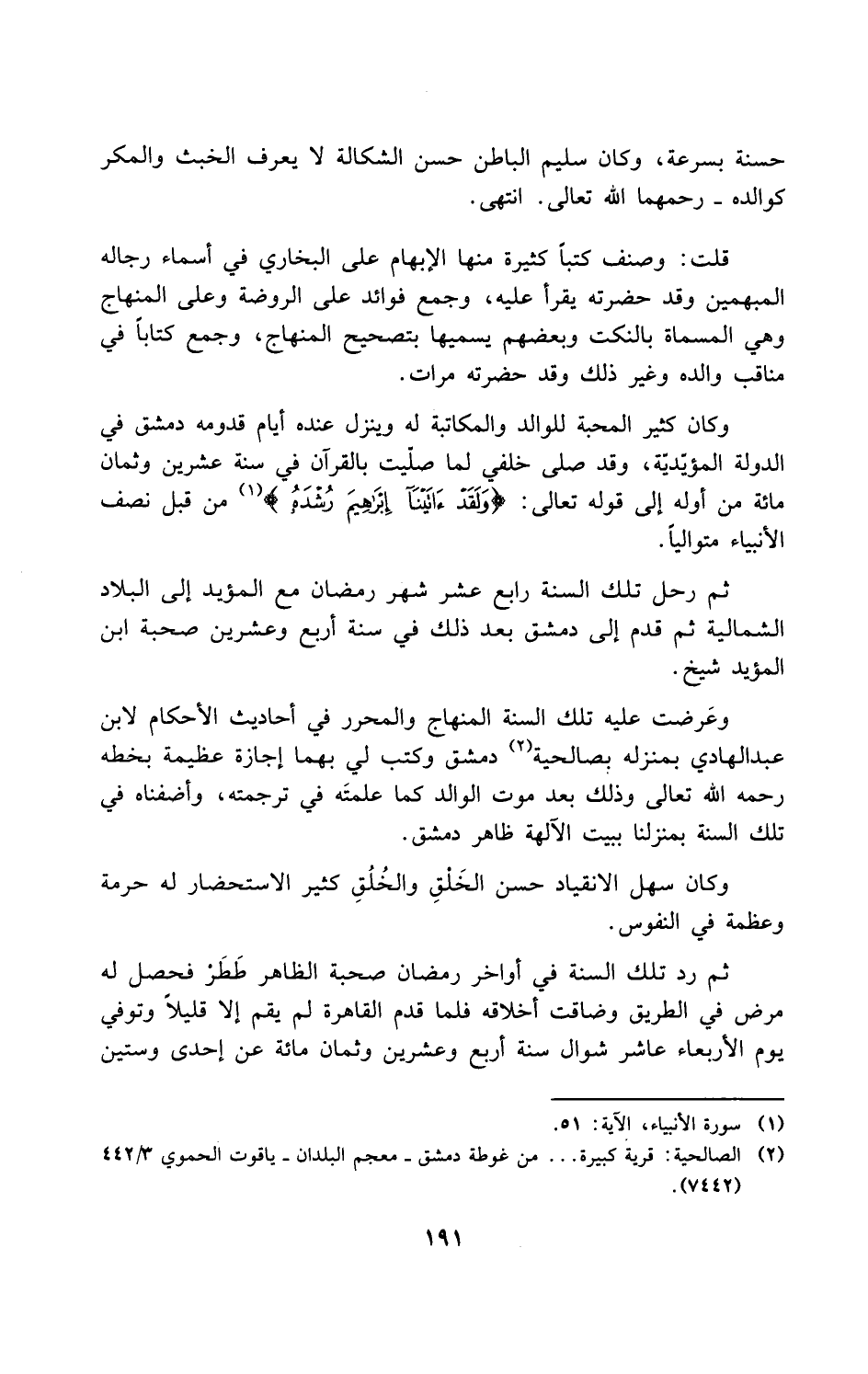 (¬2) الصالحية: قرية كبيرة. . . من غوطة دمشق -معجم البلدان- ياقوت الحموي 3/ 442 (7442).
