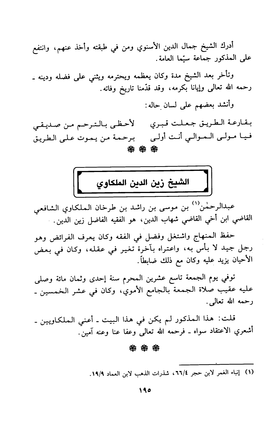 (¬1) إنباء الغمر لابن حجر 4/ 66، شذرات الذهب لابن العماد 9/ 19.