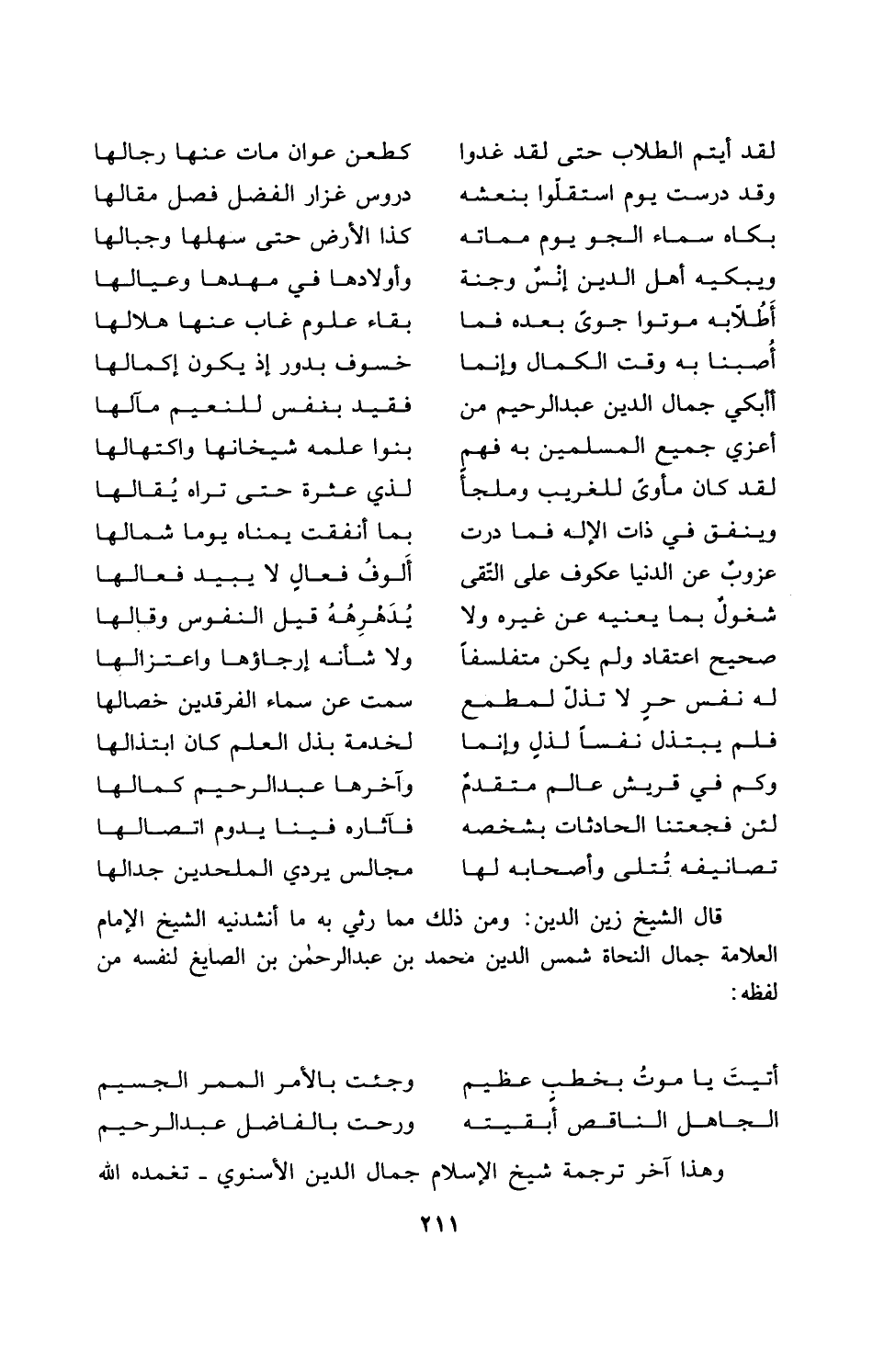 أأبكي جمال الدين عبد الرحيم من ... فقيد بنفس للنعيم مآلها