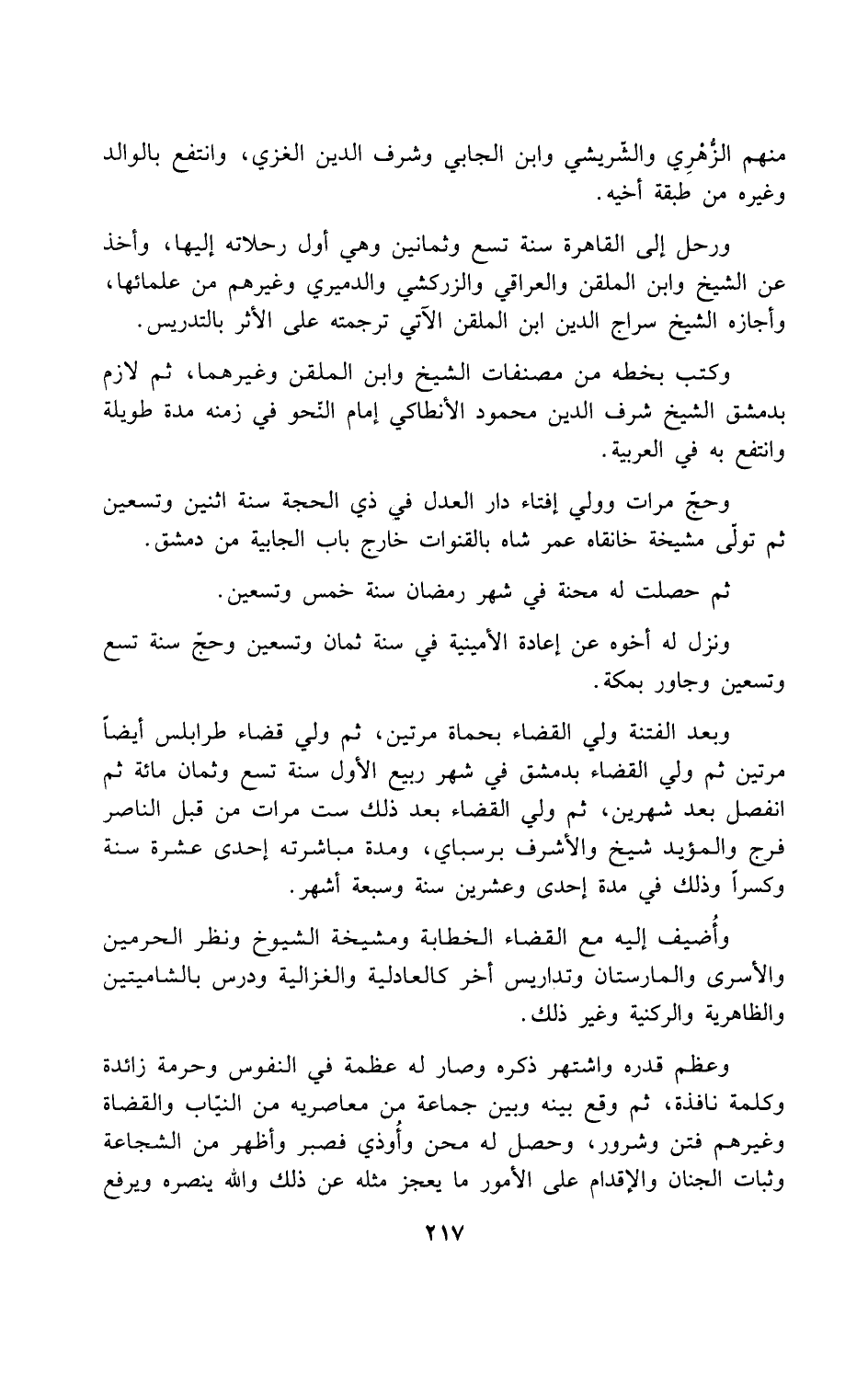 وحجّ مرات وولي إفتاء دار العدل في ذي الحجة سنة اثنين وتسعين ثم تولّى مشيخة خانقاه عمر شاه بالقنوات خارج باب الجابية من دمشق.