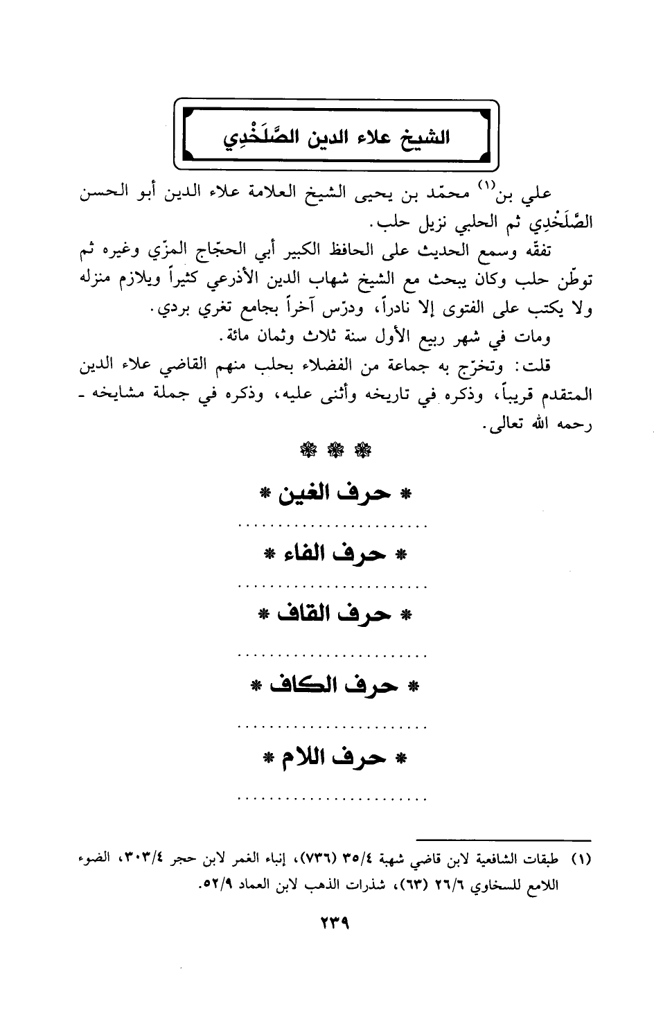 علي بن (¬1) محمد بن يحيى الشيخ العلامة علاء الدين أبو الحسن الصَّلَخْدِي ثم الحلبي نزيل حلب.
