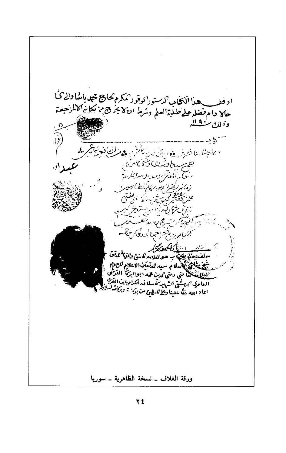 ورقة الغلاف - نسخة الظاهرية- سوريا
