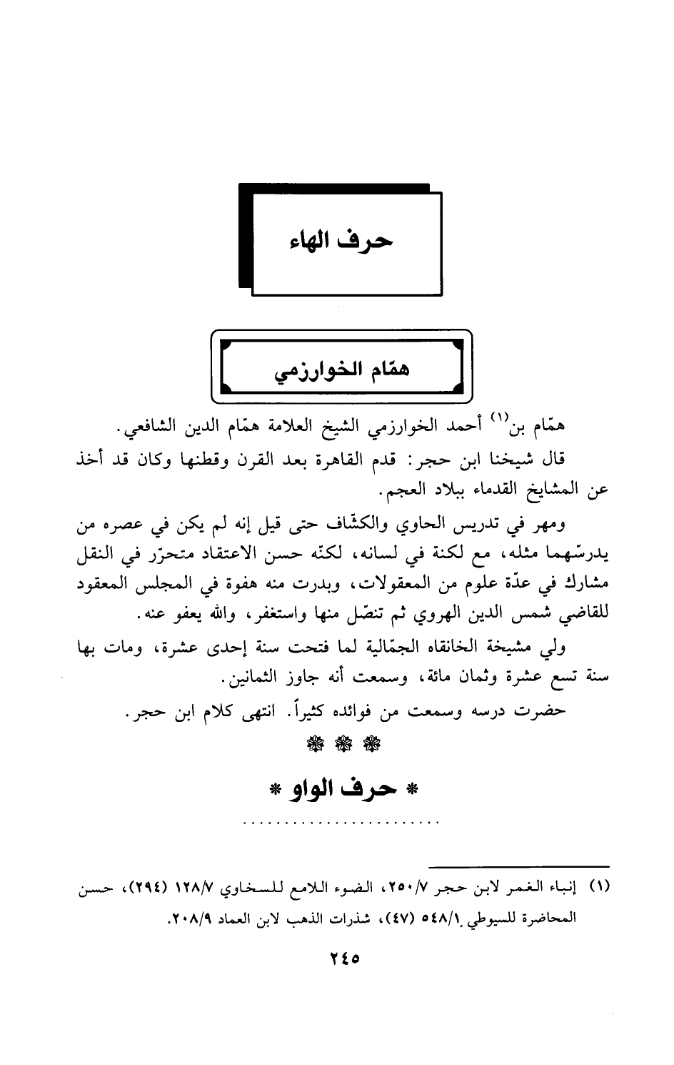 همّام بن (¬1) أحمد الخوارزمي الشيخ العلامة همّام الدين الشافعي.