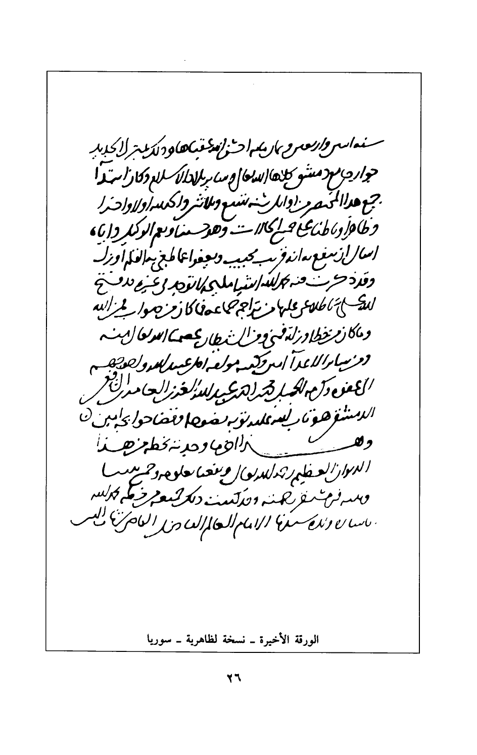 الورقة الأخيرة - نسخة لظاهرية - سوريا