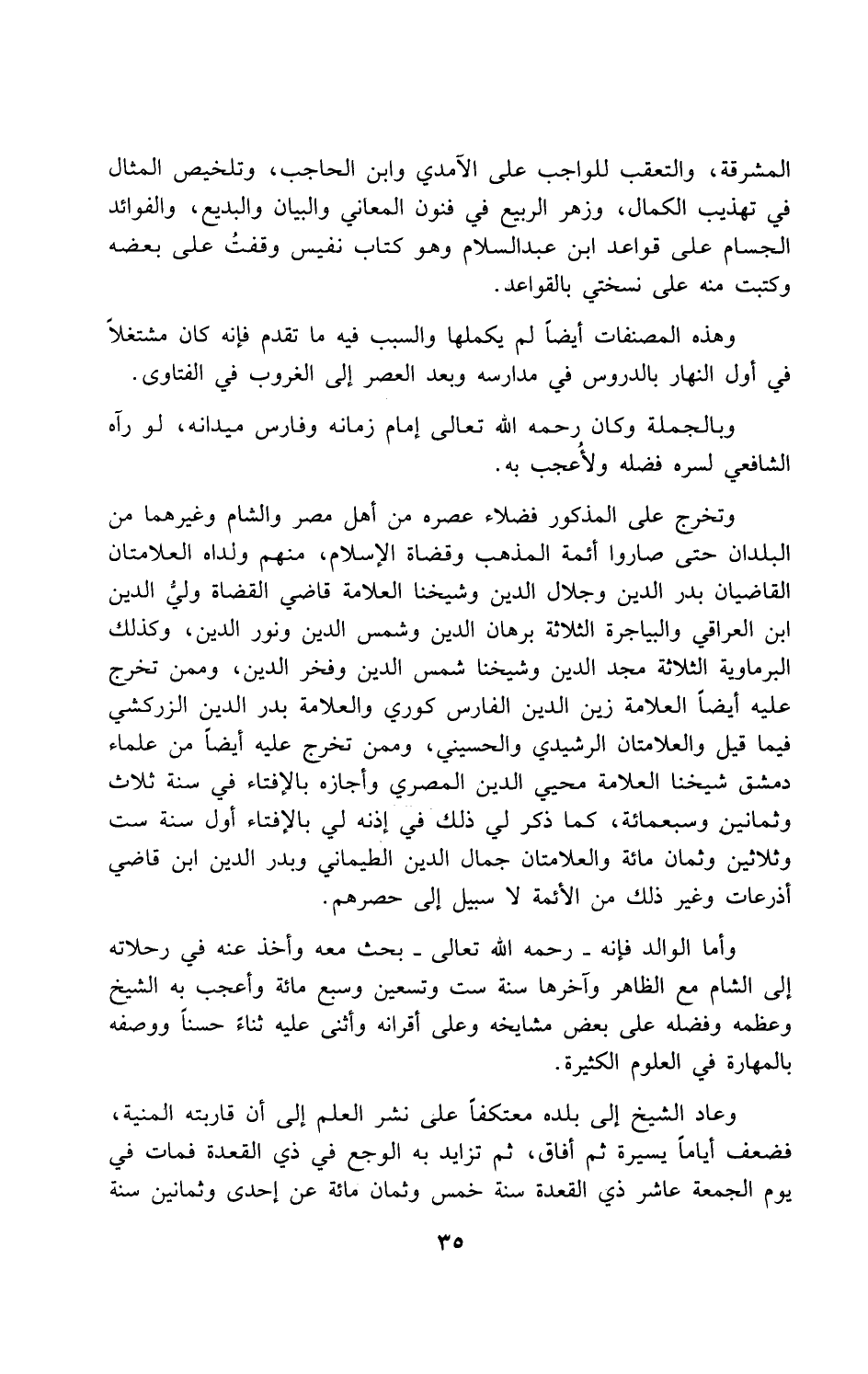 وبالجملة وكان رحمه الله تعالى إمام زمانه وفارس ميدانه، لو رآه الشافعي لسره فضله ولأُعجب به.