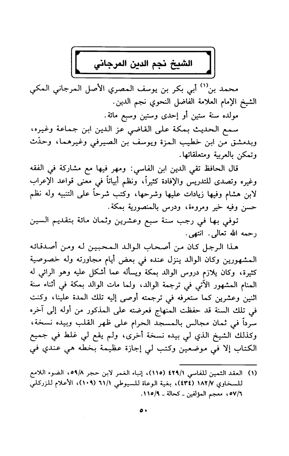 (¬1) العقد الثمين للفاسي 1/ 429 (115)، إنباء الغمر لابن حجر 8/ 59، الضوء اللامع للسخاوي 7/ 182 (434)، بغية الوعاة للسيوطي 1/ 61 (109)، الأعلام للزركلي 6/ 57، معجم المؤلفين -كحالة- 9/ 115.