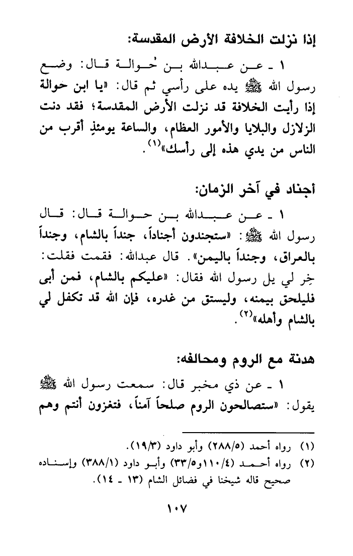 (¬2) رواه أحمد (4/110و5/33) وأبو داود (1/388) وإسناده صحيح قاله شيخنا في فضائل الشام (13-14) .