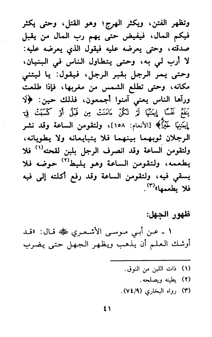 1- عن أبي موسى الأشعري - رضي الله عنه - قال: ((قد أوشك العلم أن يذهب ويظهر الجهل حتى يضرب