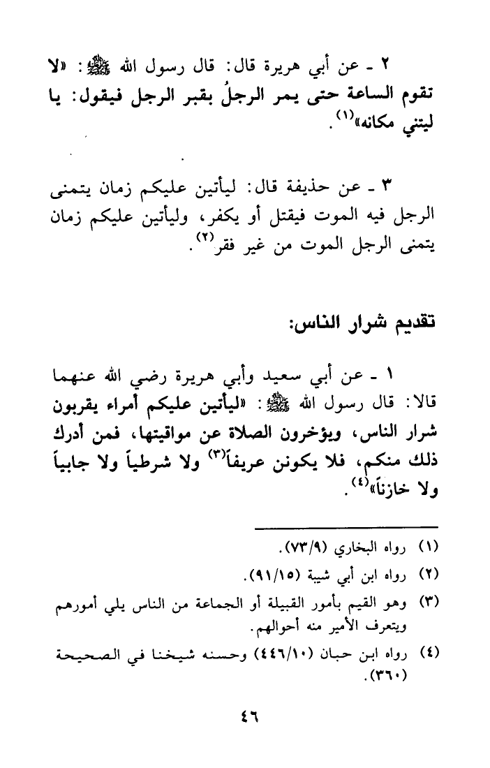 2- عن أبي هريرة قال: قال رسول الله - صلى الله عليه وسلم -: ((لا تقوم الساعة حتى يمر الرجلُ بقبر الرجل فيقول: يا ليتني مكانه)) (¬1) .