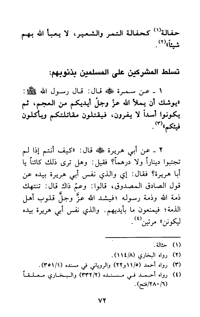 (¬4) رواه أحمد في مسنده (2/332) والبخاري معلقاً (6/280/فتح) .