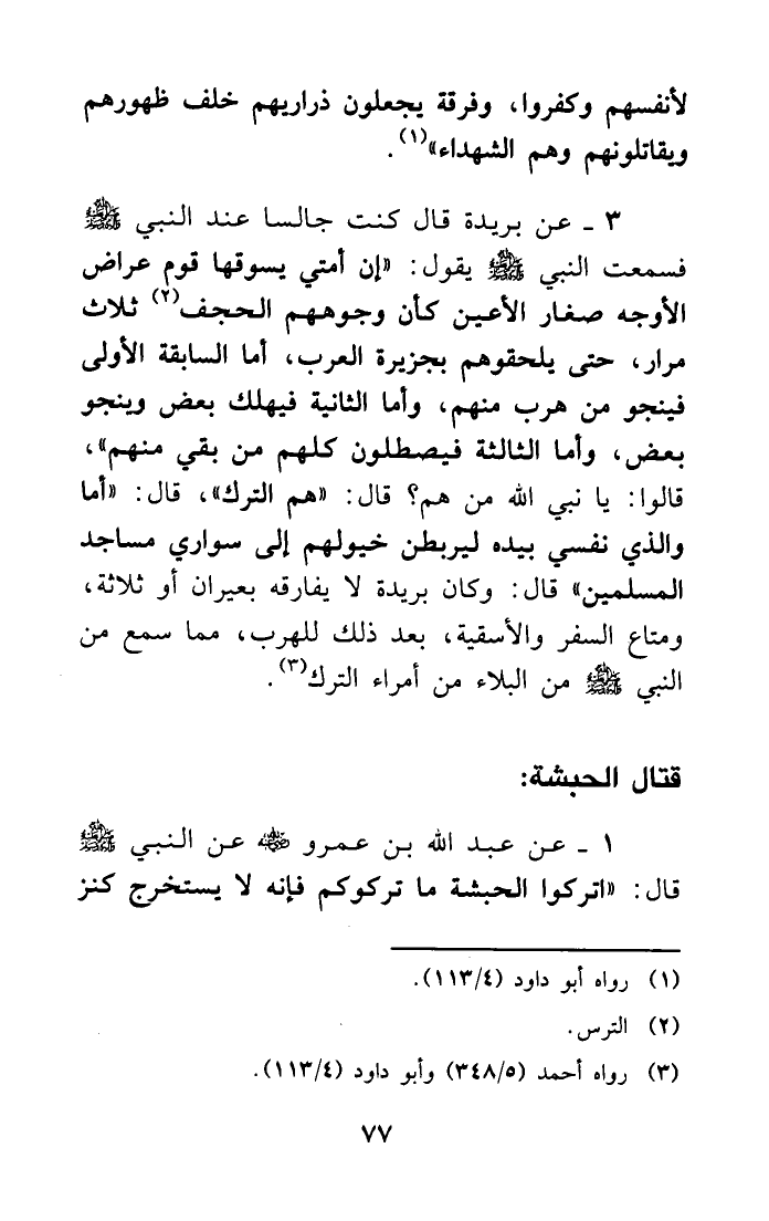 1- عن عبد الله بن عمرو - رضي الله عنه - عن النبي - صلى الله عليه وسلم - قال: ((اتركوا الحبشة ما تركوكم فإنه لا يستخرج كنز