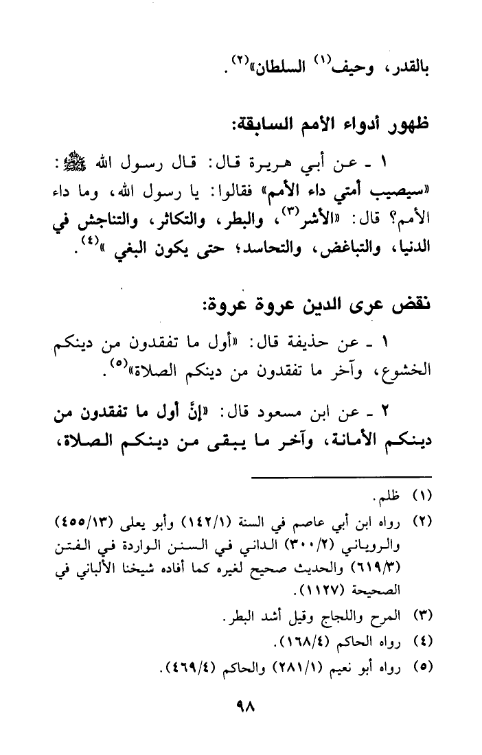 (¬2) رواه ابن أبي عاصم في السنة (1/142) وأبو يعلى (13/455) والروياني (2/300) الداني في السنن الواردة في الفتن (3/619) والحديث صحيح لغيره كما أفاده شيخنا الألباني في الصحيحة (1127) .