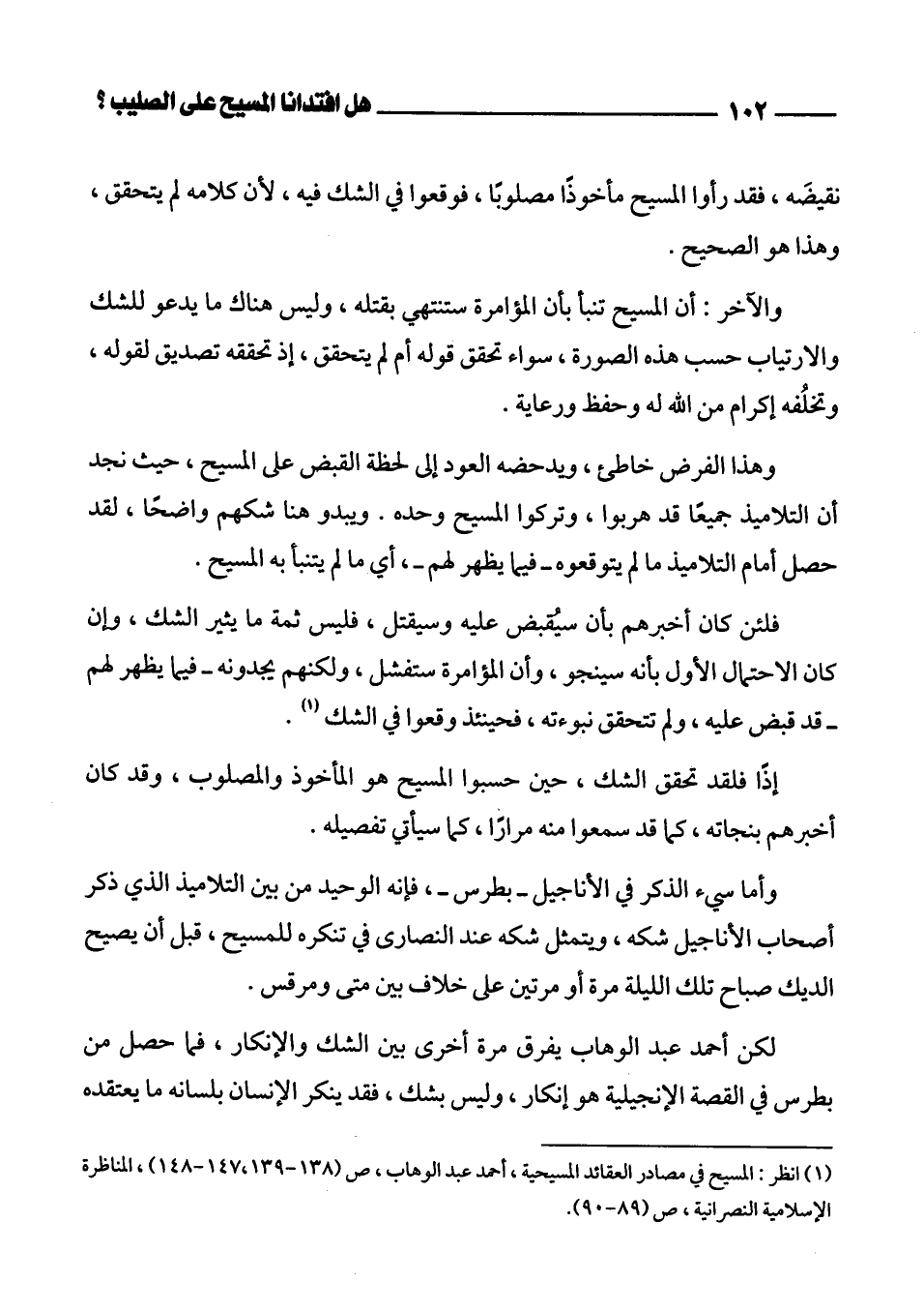 (¬1) انظر: المسيح في مصادر العقائد المسيحية، أحمد عبد الوهاب، ص (138 - 139، 147 - 148)، المناظرة الإسلامية النصرانية، ص (89 - 90).