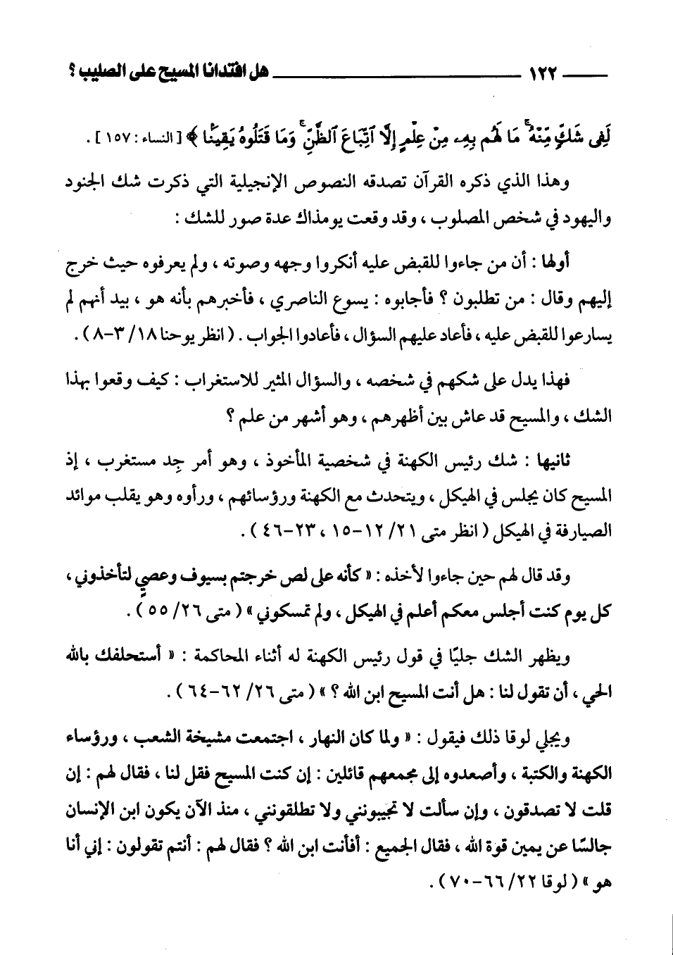 وهذا الذي ذكره القرآن تصدقه النصوص الإنجيلية التي ذكرت شك الجنود واليهود في شخص المصلوب، وقد وقعت يومذاك عدة صور للشك: