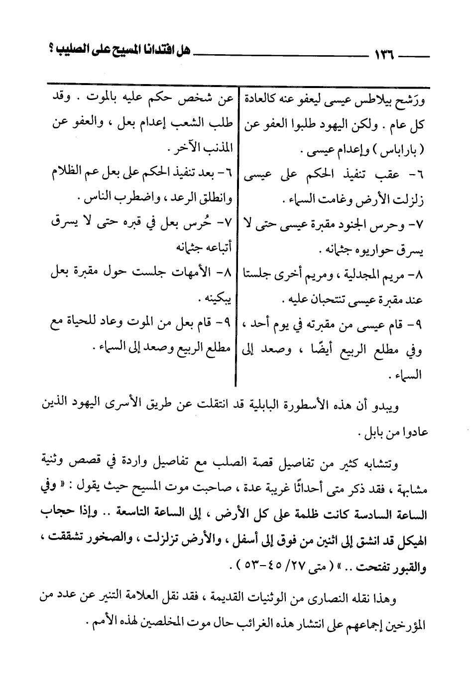 9 - قام عيسى من مقبرته في يوم أحد، وفي مطلع الربيع أيضاً، وصعد إلى السماء. ... 9 - قام بعل من الموت وعاد للحياة مع مطلع الربيع وصعد إلى السماء.
