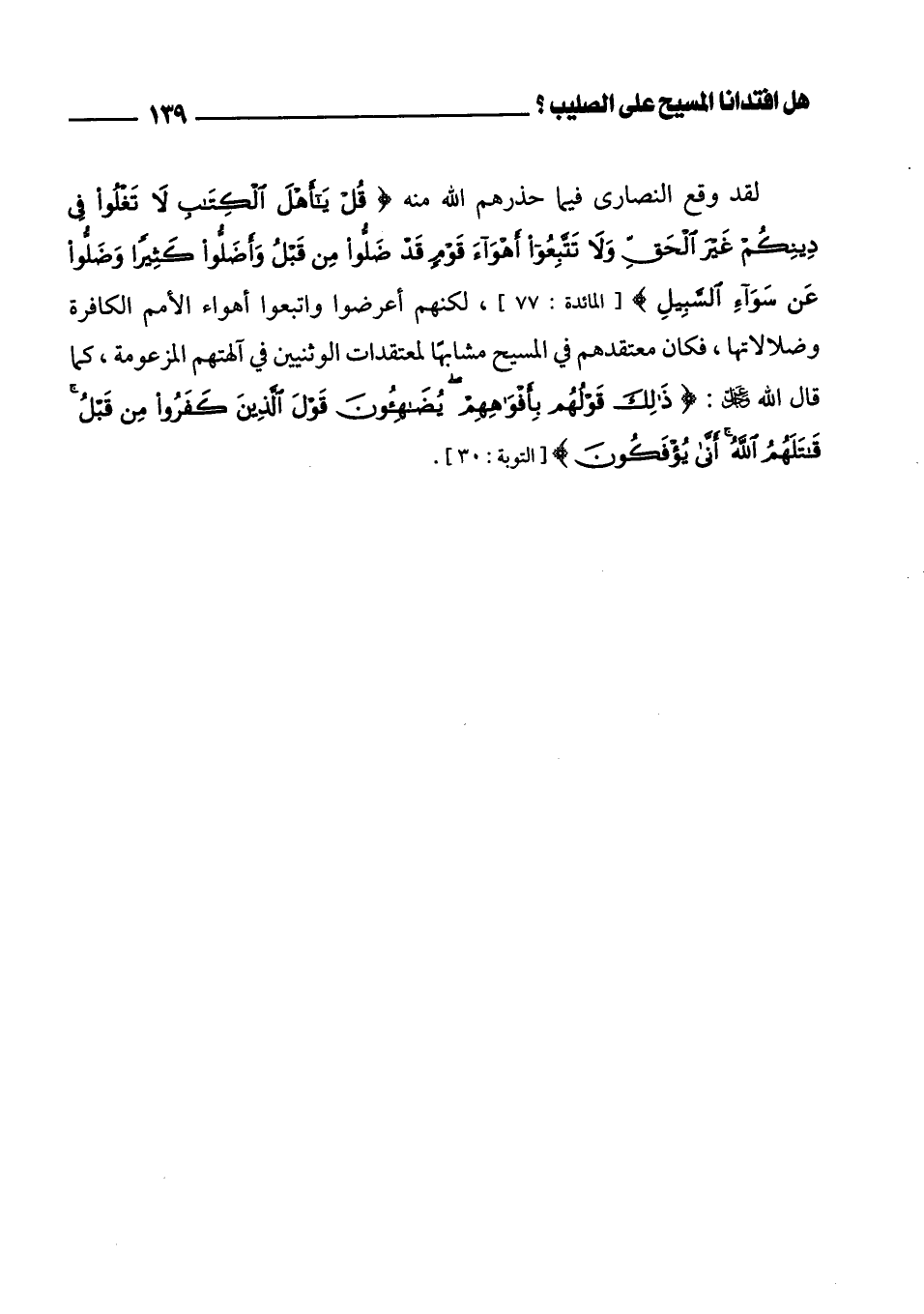 لقد وقع النصارى فيما حذرهم الله منه {قل يا أهل الكتاب لا تغلوا في دينكم غير الحقّ ولا تتّبعوا أهواء قوم قد ضلّوا من قبل وأضلّوا كثيراً وضلّوا عن سواء السّبيل} (المائدة: 77) لكنهم أعرضوا واتبعوا أهواء الأمم الكافرة وضلالاتها، فكان معتقدهم في المسيح مشابهاً لمعتقدات الوثنيين في آلهتهم المزعومة، كما قال الله عز وجل: {ذلك قولهم بأفواههم يضاهئون قول الذين كفروا من قبل قاتلهم الله أنى يؤفكون} (التوبة: 30).