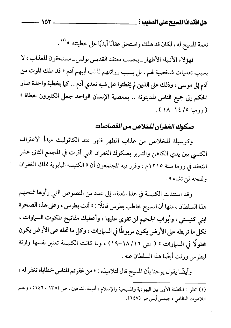 (¬1) انظر: الخطيئة الأولى بين اليهودية والمسيحية والإسلام، أميمة الشاهين، ص (135، 146)، وعلم اللاهوت النظامي، جيمس أنِس ص (647).