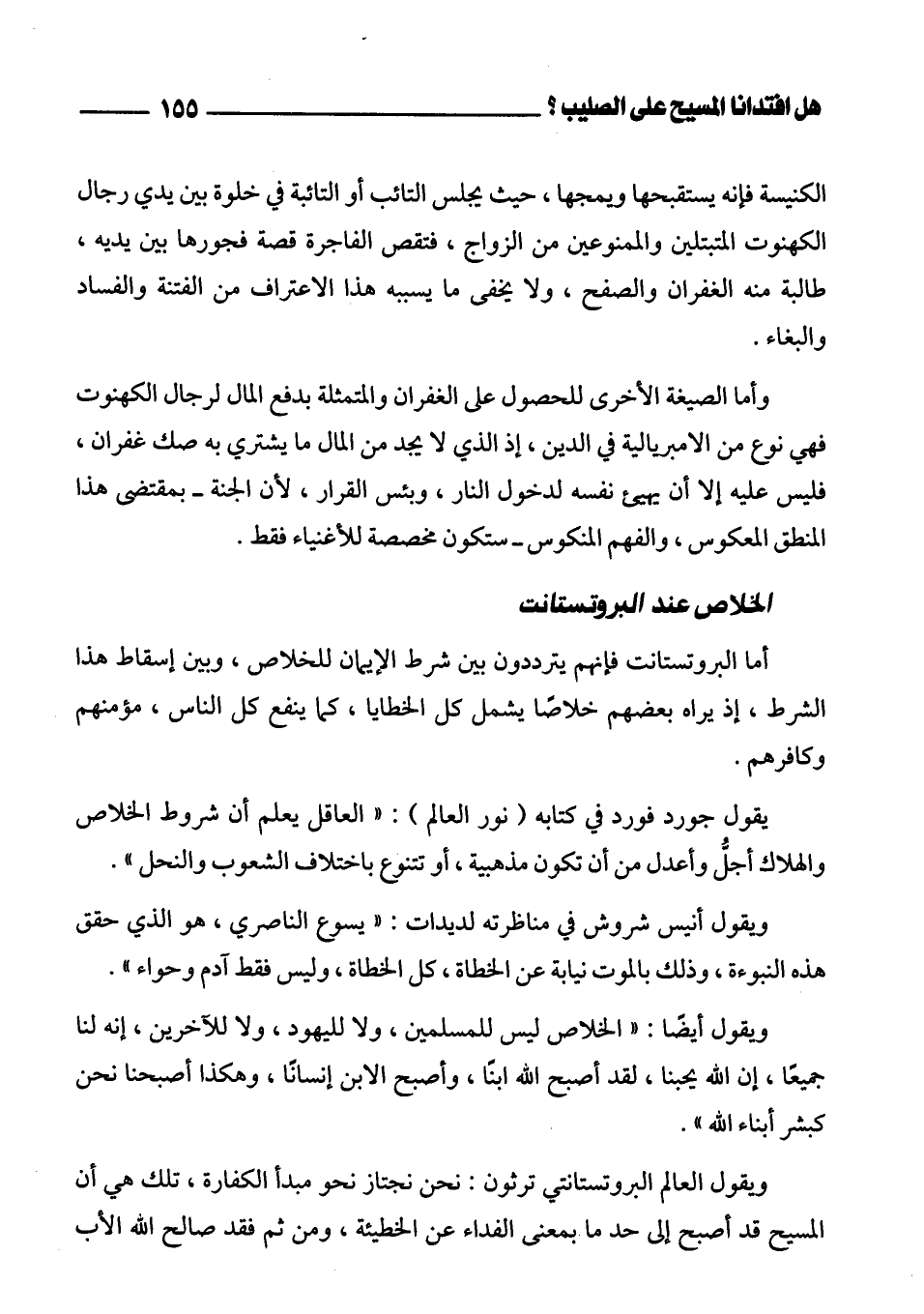 يقول جورد فورد في كتابه "نور العالم": "العاقل يعلم أن شروط الخلاص والهلاك أجلُّ وأعدل من أن تكون مذهبية، أو تتنوع باختلاف الشعوب والنحل".