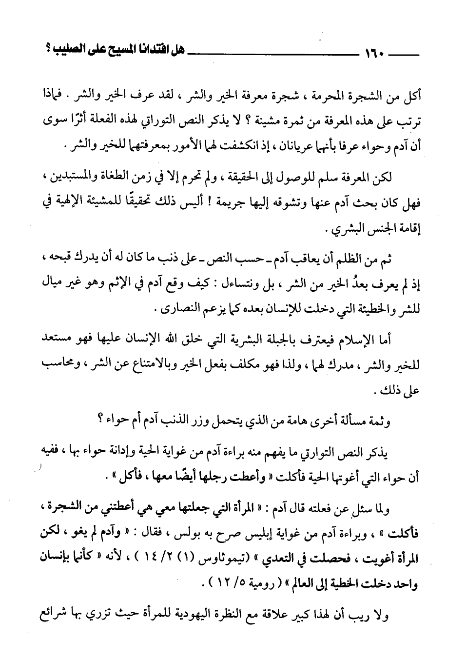 ثم من الظلم أن يعاقب آدم - حسب النص - على ذنب ما كان له أن يدرك قبحه، إذ لم يعرف بعدُ الخير من الشر، بل ونتساءل: كيف وقع آدم في الإثم وهو غير ميال للشر والخطيئة التي دخلت للإنسان بعده كما يزعم النصارى.
