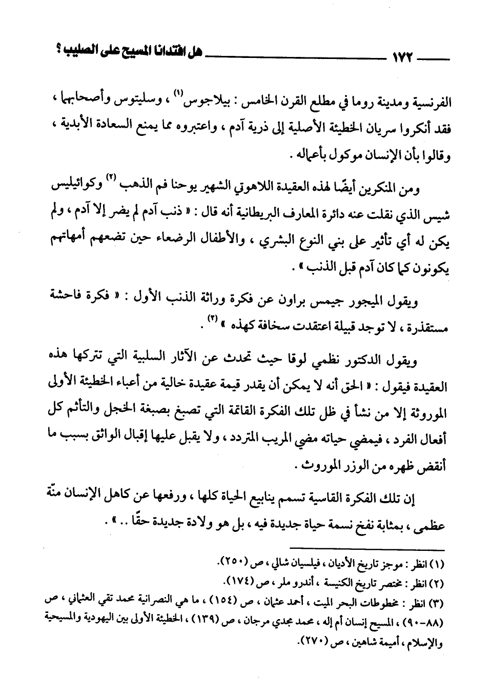 (¬2) انظر: مخطوطات البحر الميت، أحمد عثمان، ص (154)، ما هي النصرانية محمد تقي العثماني، ص (88 - 90)، المسيح إنسان أم إله، محمد مجدي مرجان، ص (139)، الخطيئة الأولى بين اليهودية والمسيحية والإسلام، أميمة شاهين، ص (270).