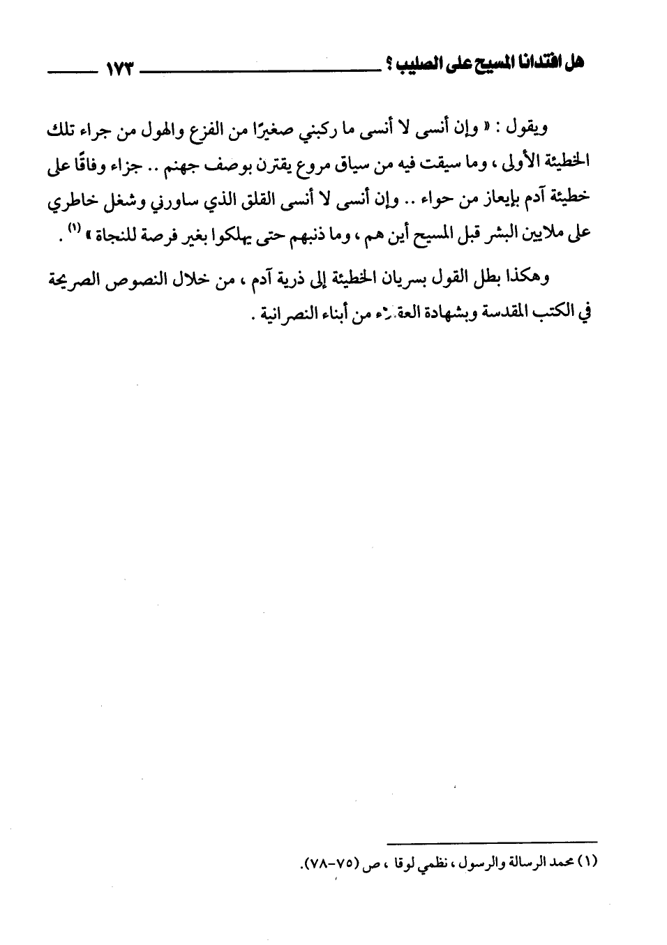 (¬1) محمد الرسالة والرسول، نظمي لوقا، ص (75 - 78).