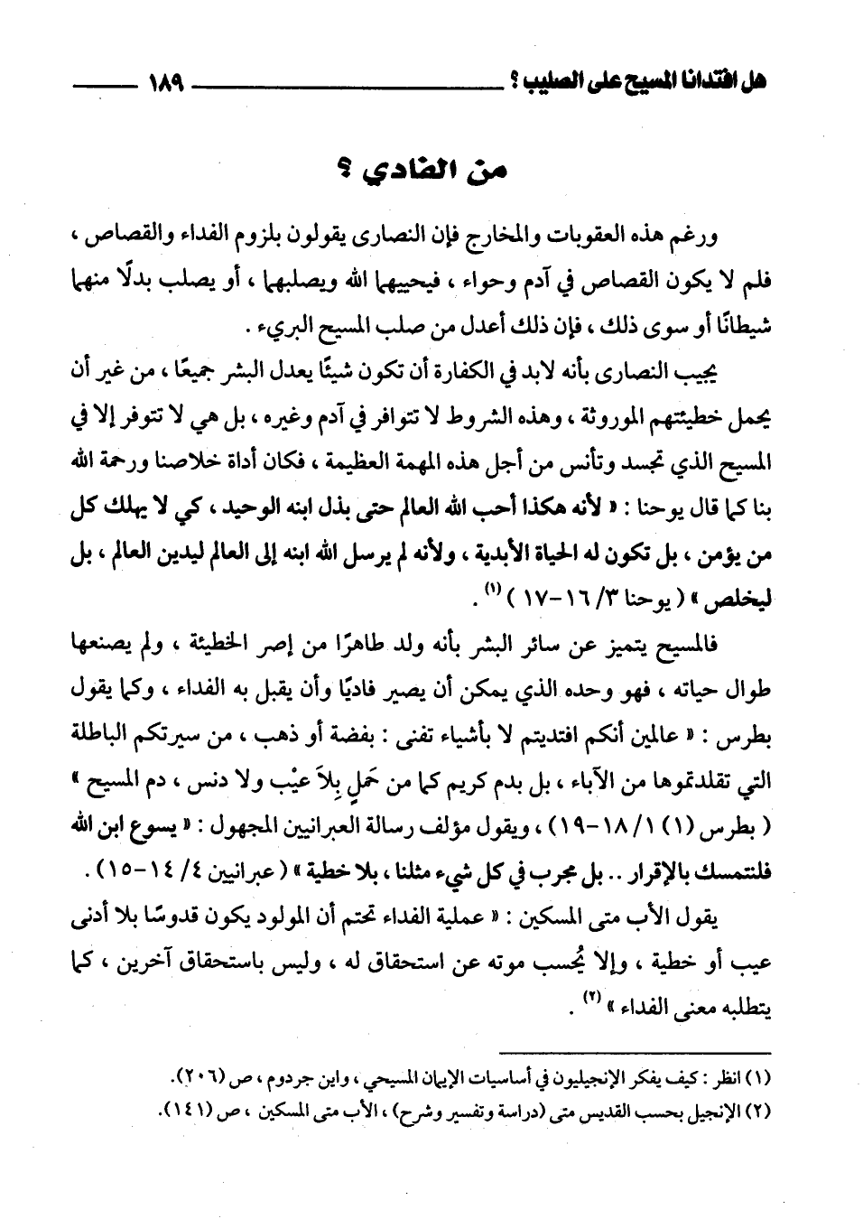 (¬1) انظر: كيف يفكر الإنجيليون في أساسيات الإيمان المسيحي، واين جردوم، ص (206).