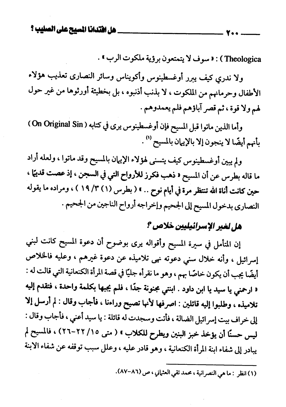 (¬1) انظر: ما هي النصرانية، محمد تقي العثماني، ص (86 - 87).