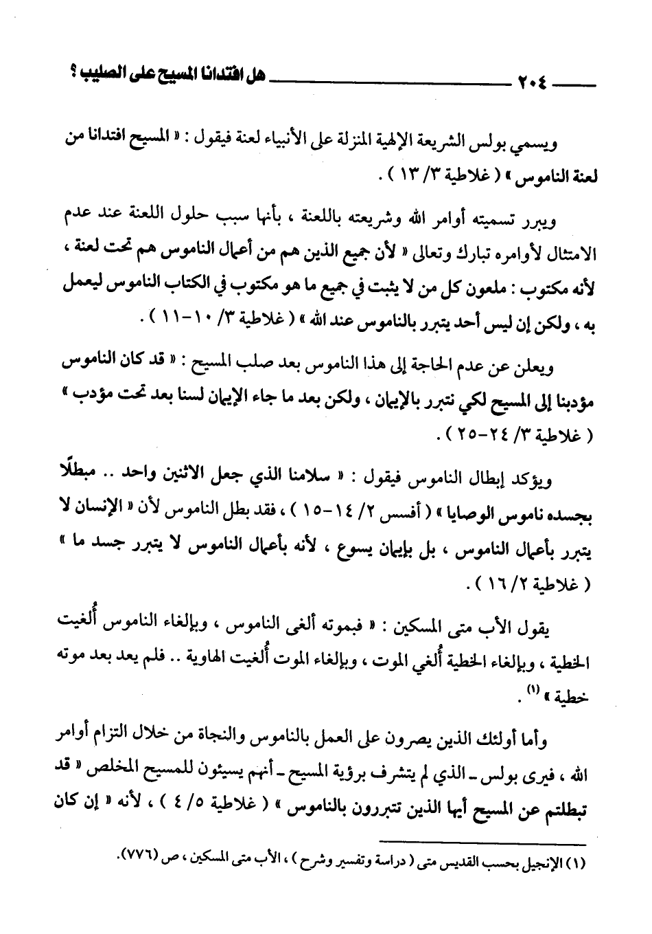 ويسمي بولس الشريعة الإلهية المنزلة على الأنبياء لعنة فيقول: " المسيح افتدانا من لعنة الناموس" (غلاطية 3/ 13).