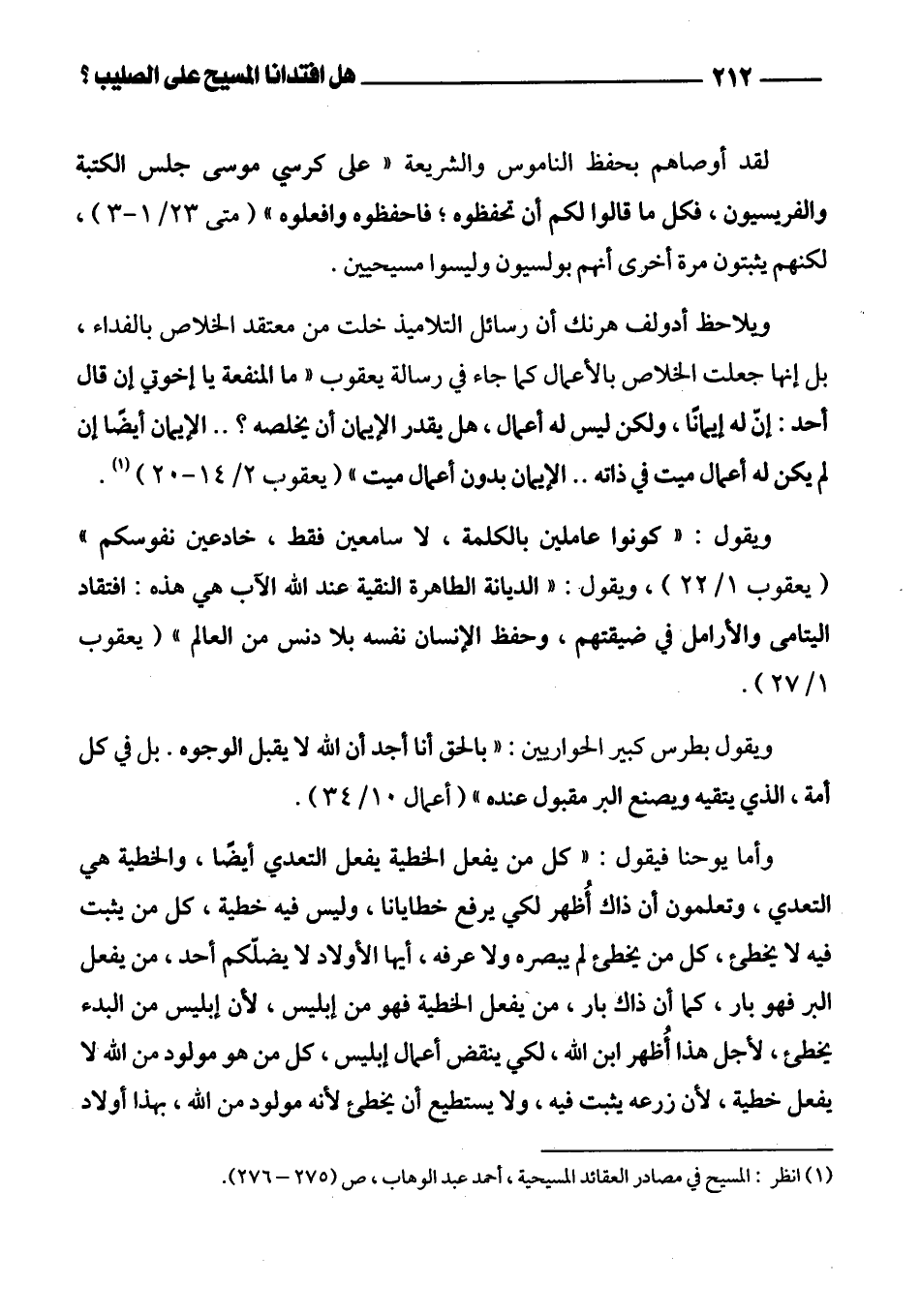 (¬1) انظر: المسيح في مصادر العقائد المسيحية، أحمد عبد الوهاب، ص (275 - 276).