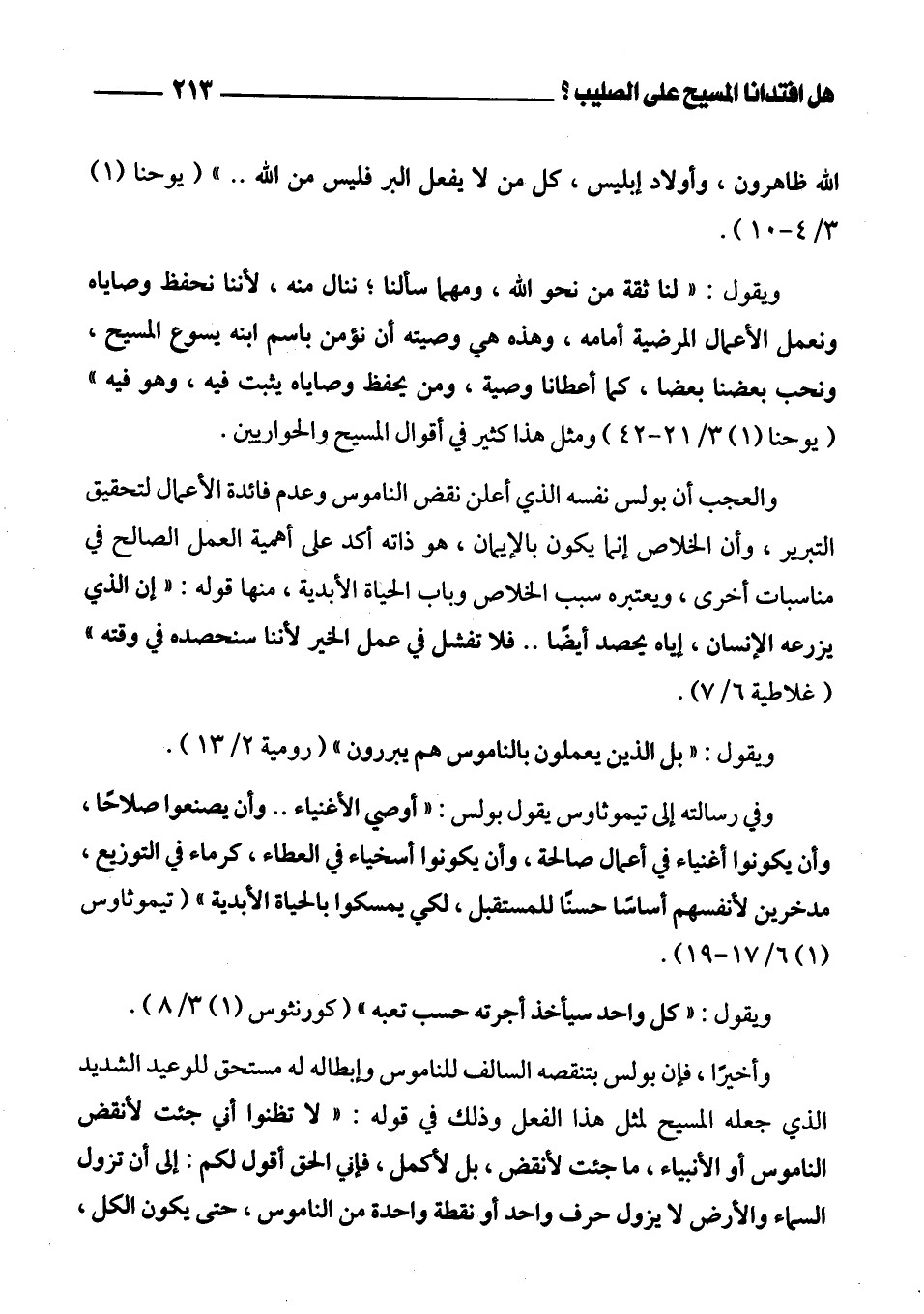 ويقول: " بل الذين يعملون بالناموس هم يبررون " (رومية 2/ 13).