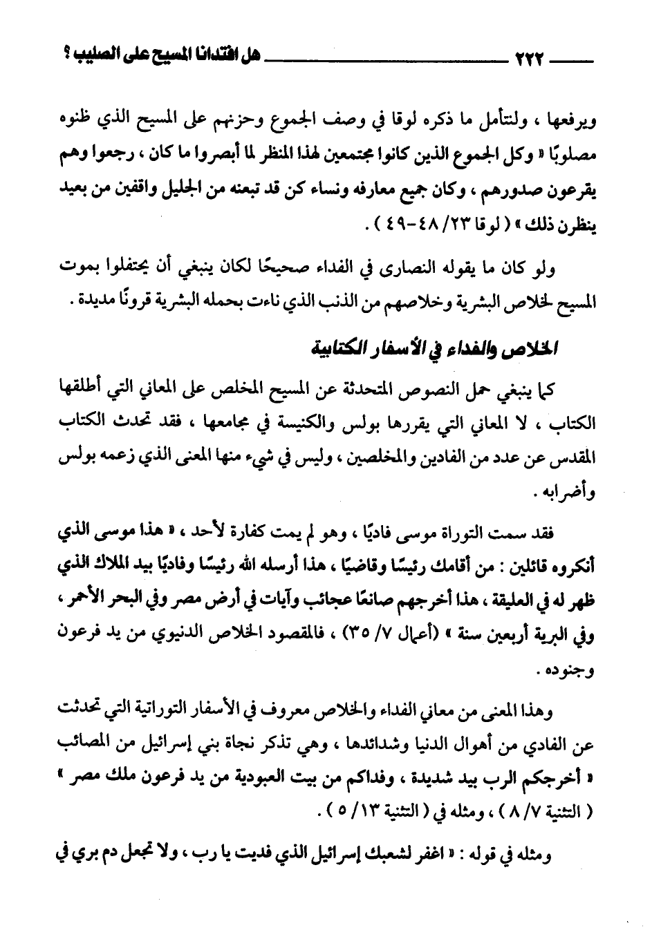 كما ينبغي حمل النصوص المتحدثة عن المسيح المخلص على المعاني التي أطلقها الكتاب، لا المعاني التي يقررها بولس والكنيسة في مجامعها، فقد تحدث الكتاب المقدس عن عدد من الفادين والمخلصين، وليس في شيء منها المعنى الذي زعمه بولس وأضرابه.