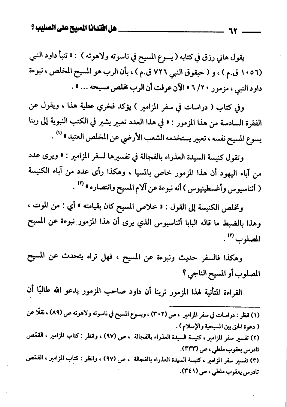 (¬1) انظر: دراسات في سفر المزامير، ص (302)، ويسوع المسيح في ناسوته ولاهوته ص (89)، نقلاً عن "دعوة الحق بين المسيحية والإسلام".