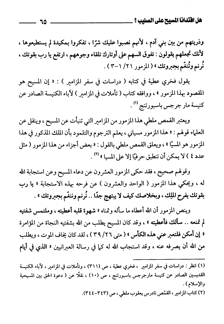 (¬1) انظر: دراسات في سفر المزامير، فخري عطية، ص (311)، وتأملات في المزامير، لآباء الكنيسة القديسين الصادر عن كنيسة مارجرجس باسبورتنج، ص (10)، نقلاً عن "دعوة الحق بين المسيحية والإسلام".