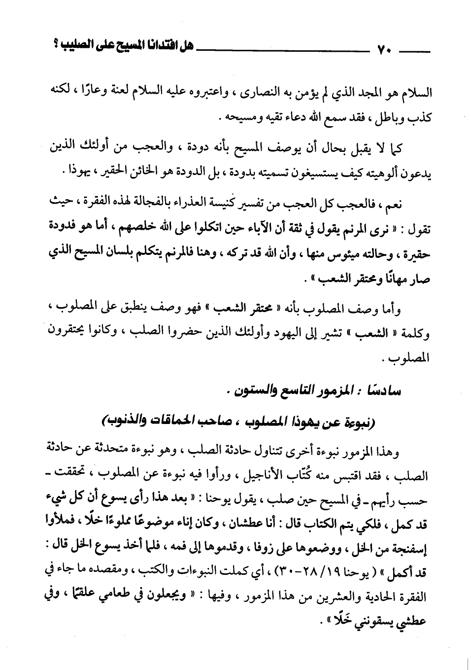 كما لا يقبل بحال أن يوصف المسيح بأنه دودة، والعجب من أولئك الذين يدعون ألوهيته كيف يستسيغون تسميته بدودة، بل الدودة هو الخائن الحقير، يهوذا.
