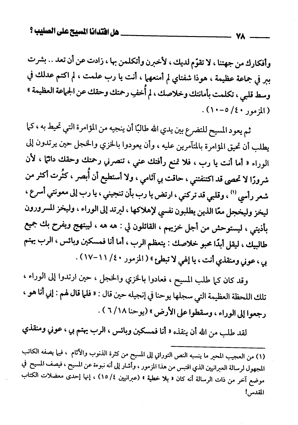(¬1) من العجيب المحير ما ينسبه النص التوراتي إلى المسيح من كثرة الذنوب والآثام، فيما يصفه الكاتب المجهول لرسالة العبرانيين الذي اقتبس من هذا المزمور، وأشار إلى أنه نبوءة عن المسيح، فيصف المسيح في موضع آخر من ذات الرسالة أنه كان " بلا خطية " (عبرانيين 4/ 15)، إنها إحدى معضلات الكتاب المقدس!