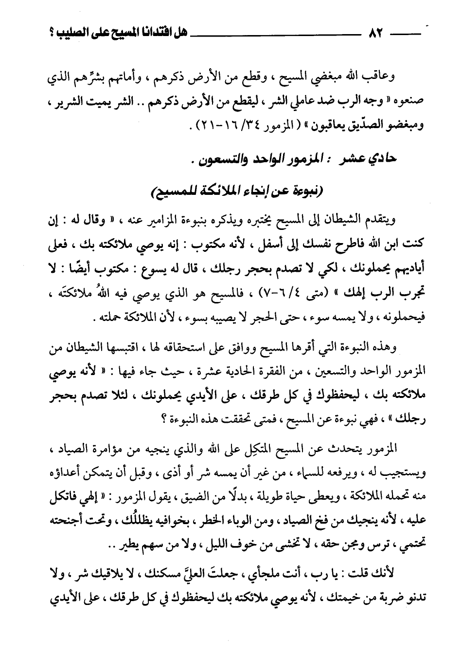 حادي عشر: المزمور الواحد والتسعون (نبوءة عن إنجاء الملائكة للمسيح)
