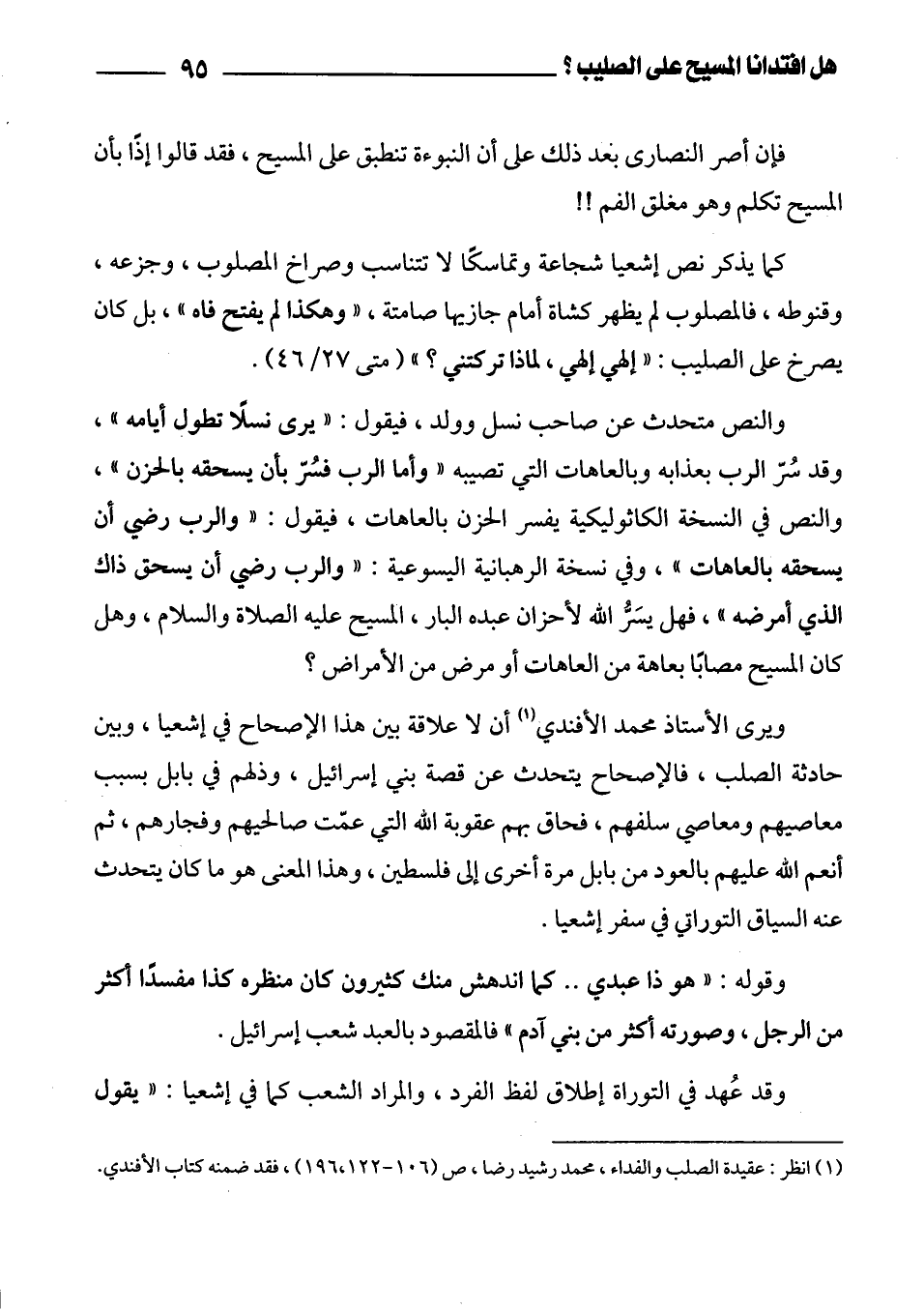 (¬1) انظر: عقيدة الصلب والفداء، محمد رشيد رضا، ص (106 - 122، 196)، فقد ضمنه كتاب الأفندي.