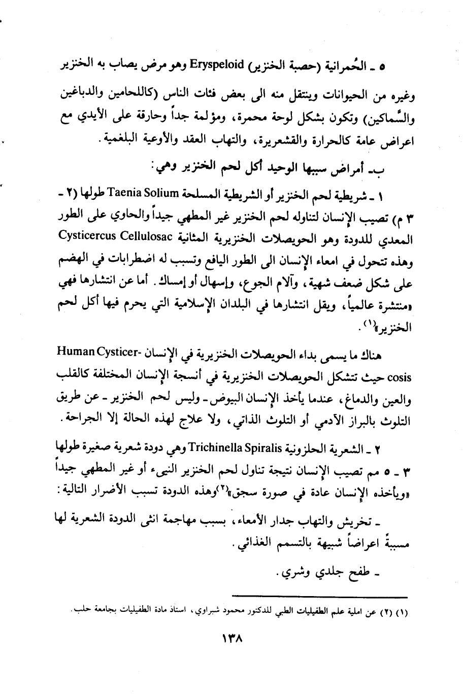 (1) عن أملية علم الطفيليات الطبي للدكتور محمود شبراوي. أستاذ مادة الطفيليات بجامعة حلب.