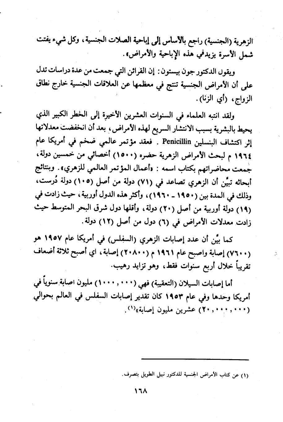 كما بين أن عدد إصابات الزهري (السفلس) في أمريكا عام 1957 هو (7600) إصابة وأصبح عام 1961 م (20800) إصابة، اي أصبح ثلاثة أضعاف تقريبا خلال أربع سنوات فقط، وهو تزايد رهيب.