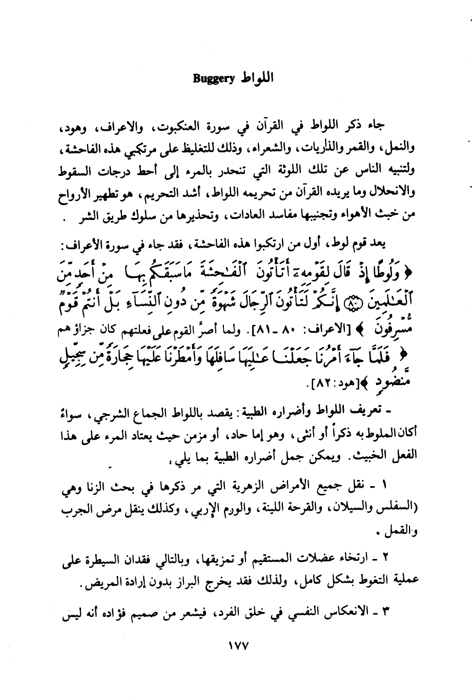 يقصد باللواط الجماع الشرجي، سواء أكان الملوط به ذكرا أو أنثى، وهو إما حاد، أو مزمن حيث يعتاد المرء على هذا الفعل الخبيث.