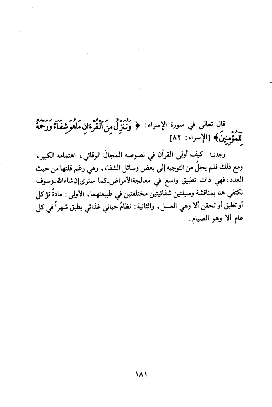 وجدنا كيف أولى القرآن في نصوصه المجال الوقائي، اهتمامه الكبير، ومع ذلك فلم يخل من التوجيه إلى بعض وسائل الشفاء، وهي رغم قلتها من حيث العدد.