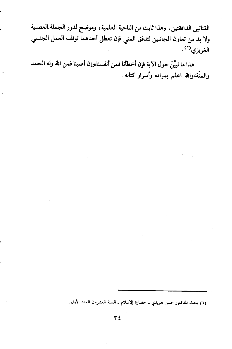 القناتين الدافقتين، وهذا ثابت من الناحية العلمية، وموضح لدور الجملة العصبية ولابد من تعاون الجانبين لتدفق المني فإن تعطل أحدهما توقف العمل الجنسي الغريزي (1) .