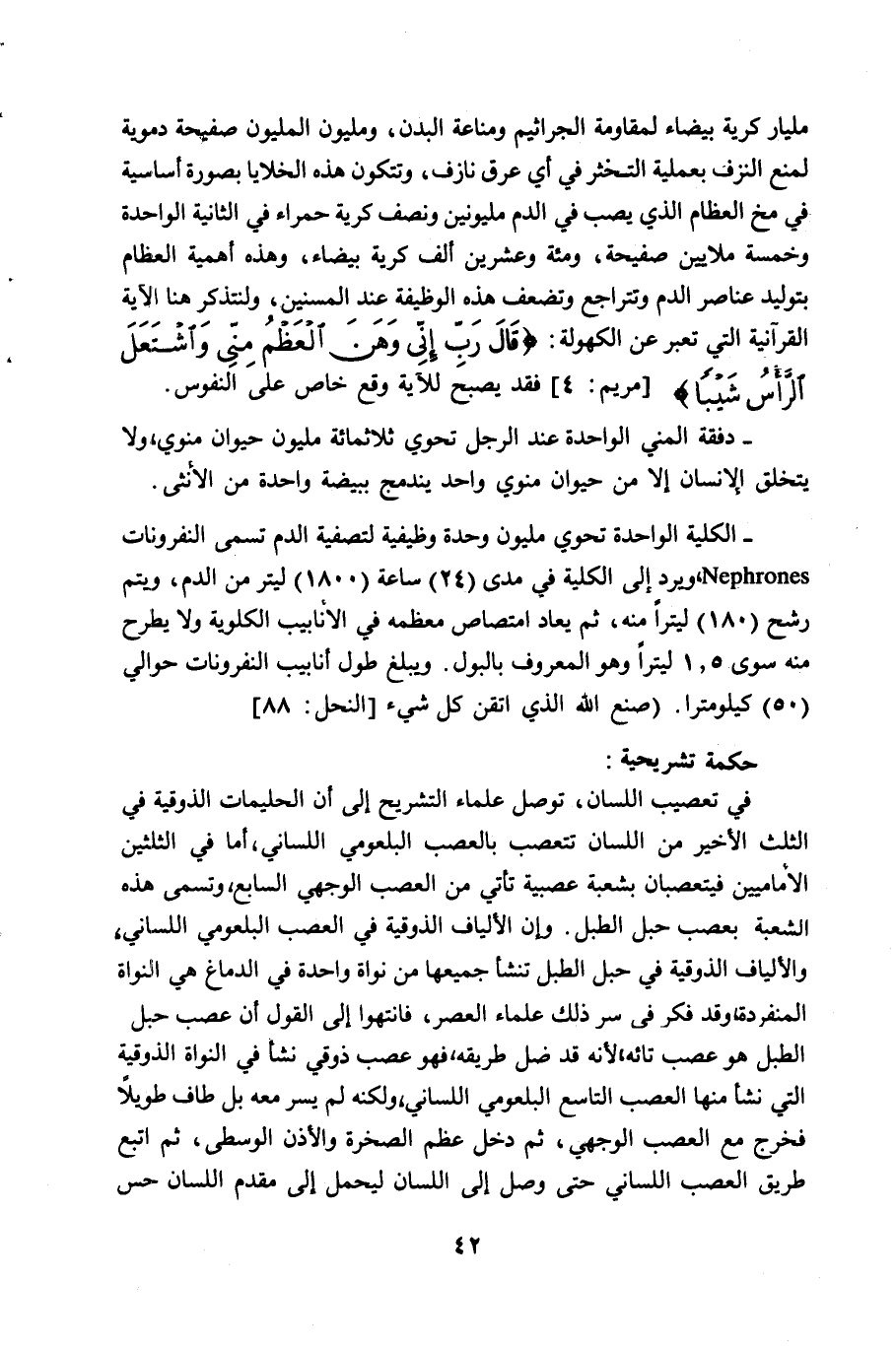 ويبلغ طول أنابيب النفرونات حوالي (50) كيلو مترا. (صنع الله الذي أتقن كل شئ [النحل: 88]