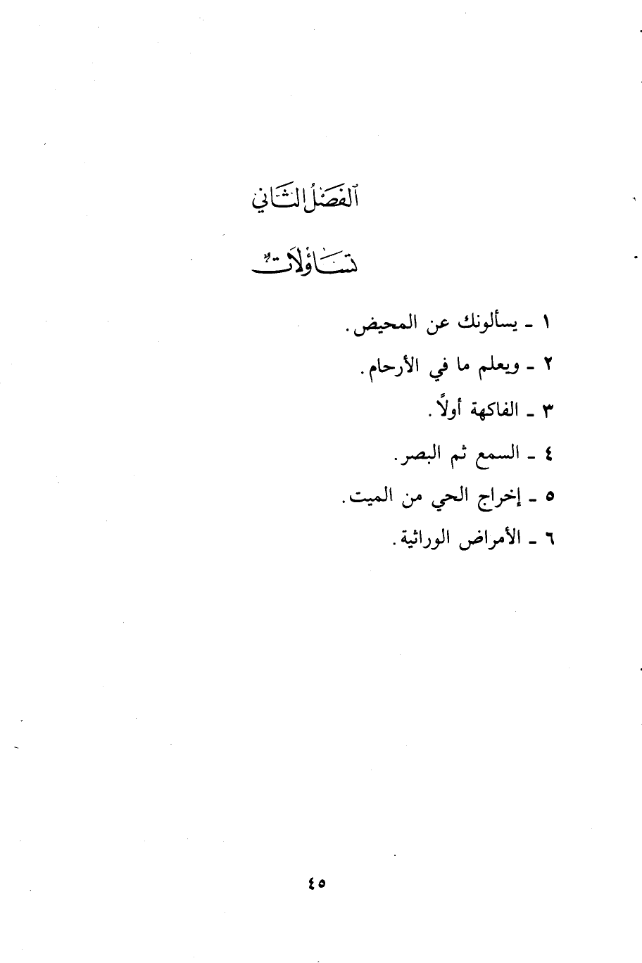 الفصل الثاني: تساؤلات