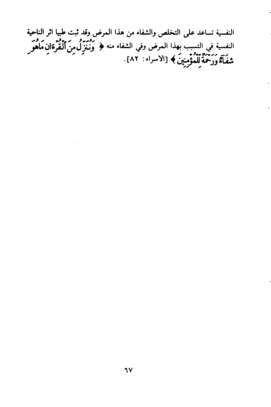 النفسية تساعد على التخلص والشفاء من هذا المرض وقد ثبت طبيا اثر الناحية النفسية في التسبب بهذا المرض وفي الشفاء منه (وننزل من القرآن ما هو شفاء ورحمة للمؤمنين) [الاسراء: 82] .